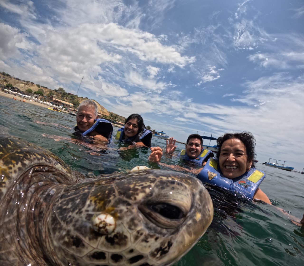 At the agreed-upon time, our meeting point will be the pier in the district of Canoas, formerly known as Cancas de Punta Sal. At this beach resort, we will have the opportunity to participate in various activities, such as whale watching, where humpback whales can be found in the waters off the northern coast of Peru during this season. After this experience, we will return to the bay for a ride on a speedboat to the Royal Decameron, followed by a banana boat ride, fishing with a handline, and then swimming alongside giant sea turtles. Finally, we will enjoy a delicious ceviche on board, prepared with the catch. These activities at sea will last approximately 3 hours and 30 minutes.